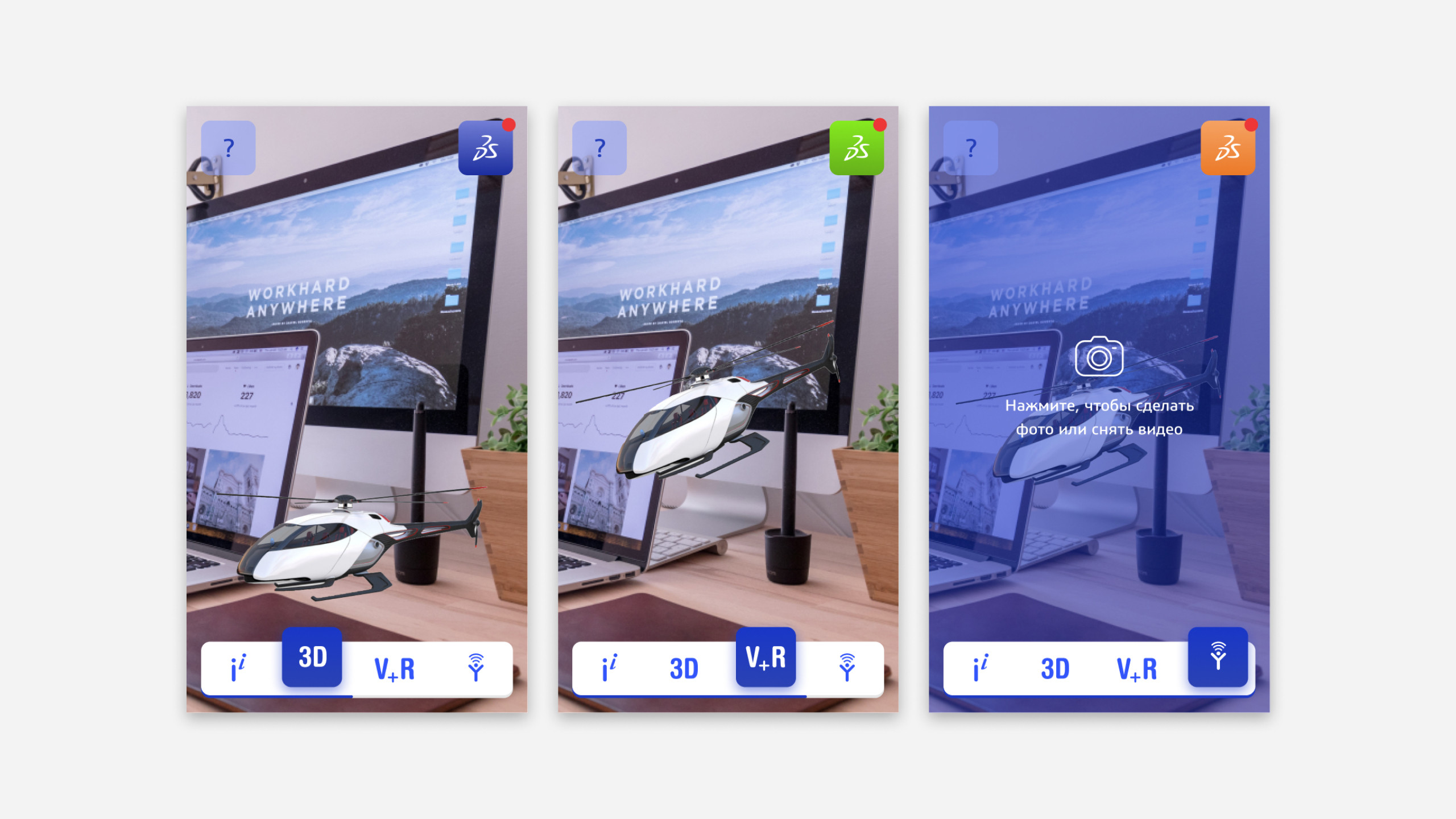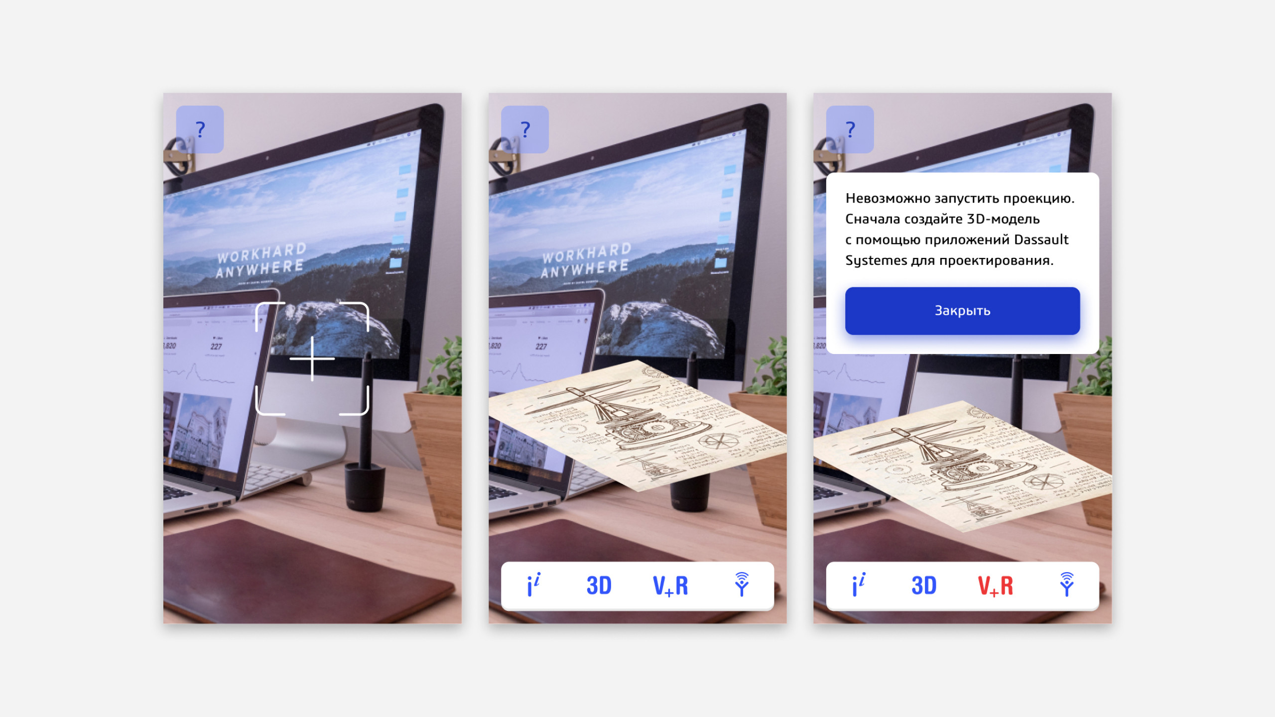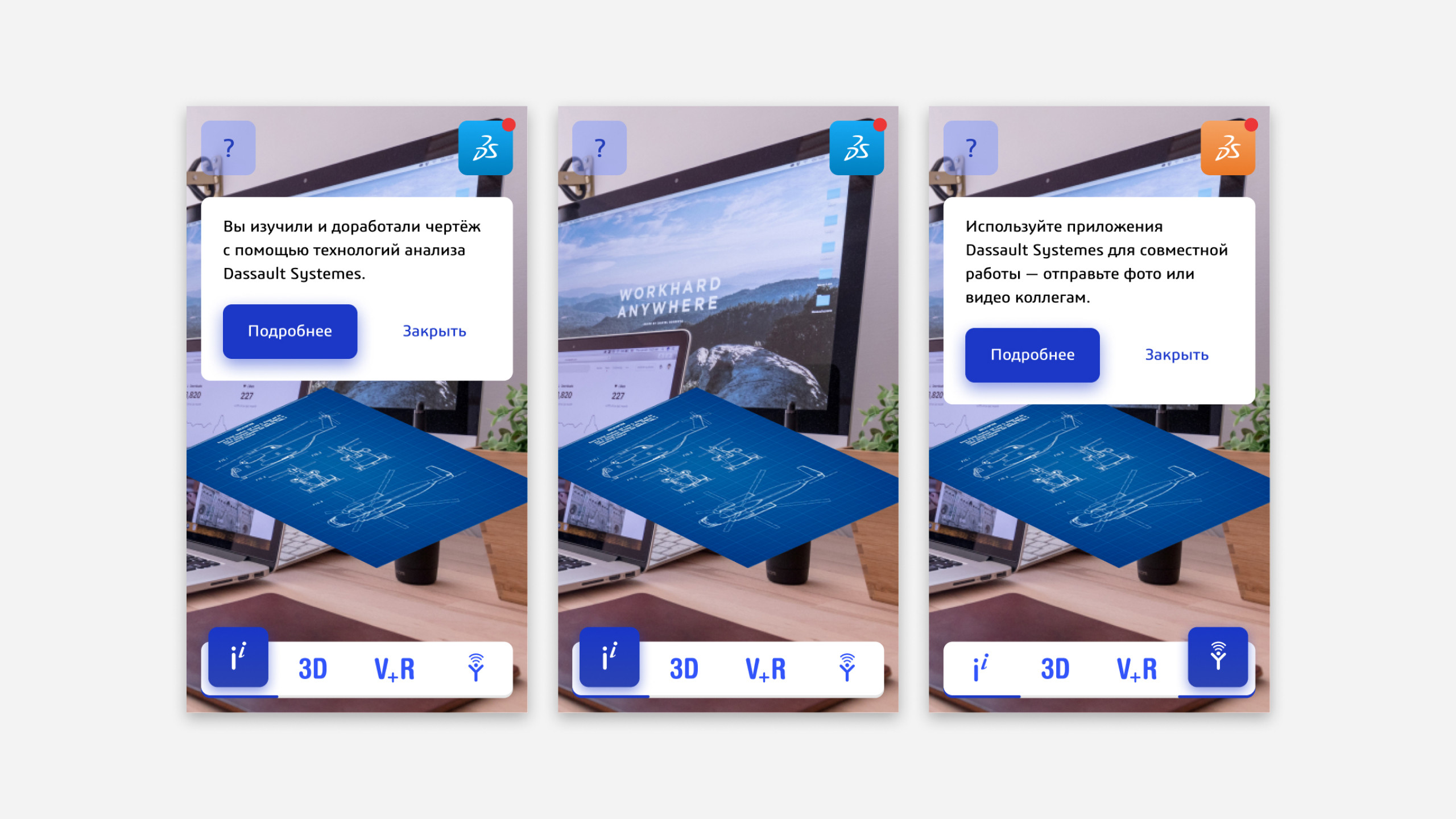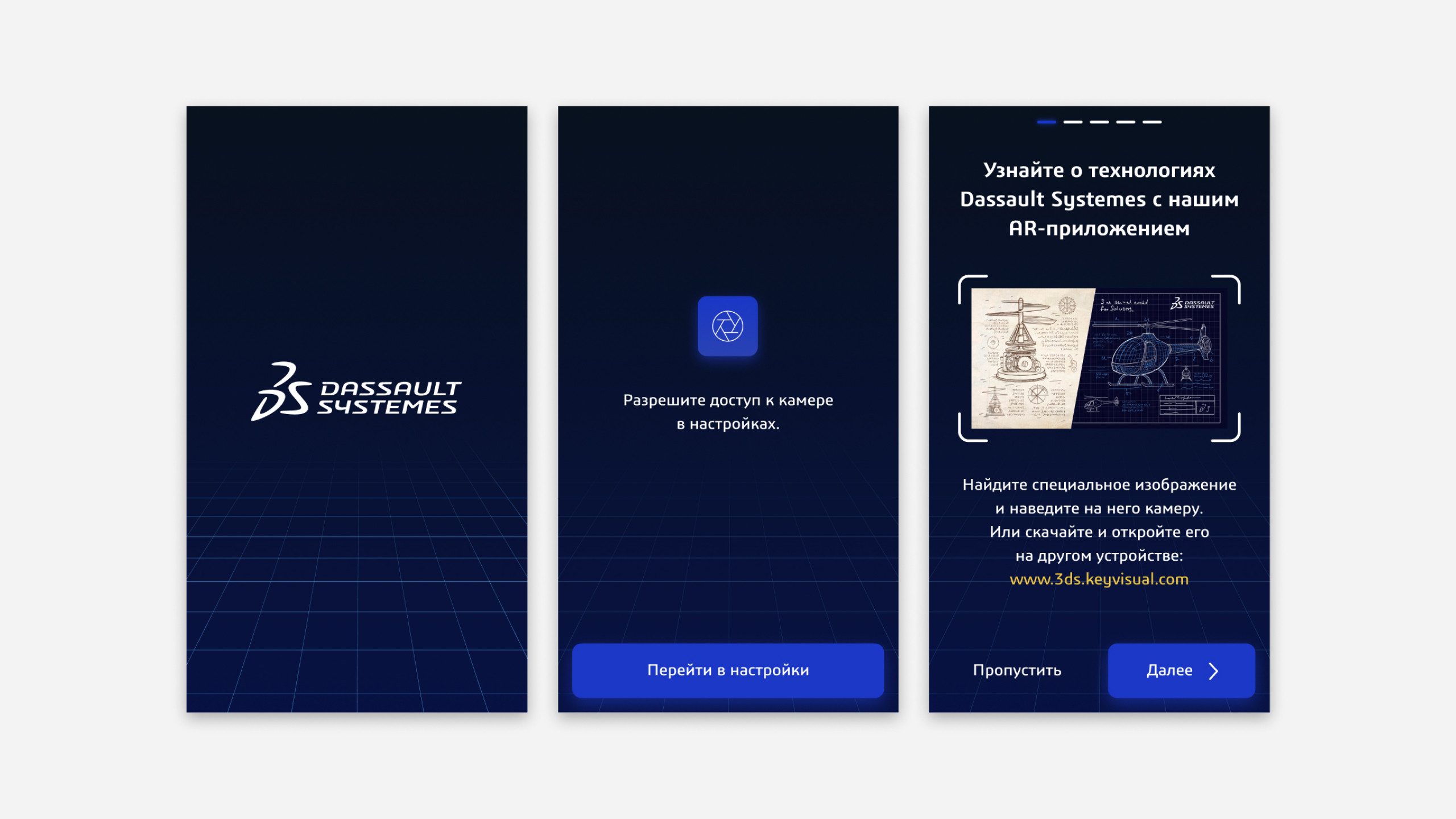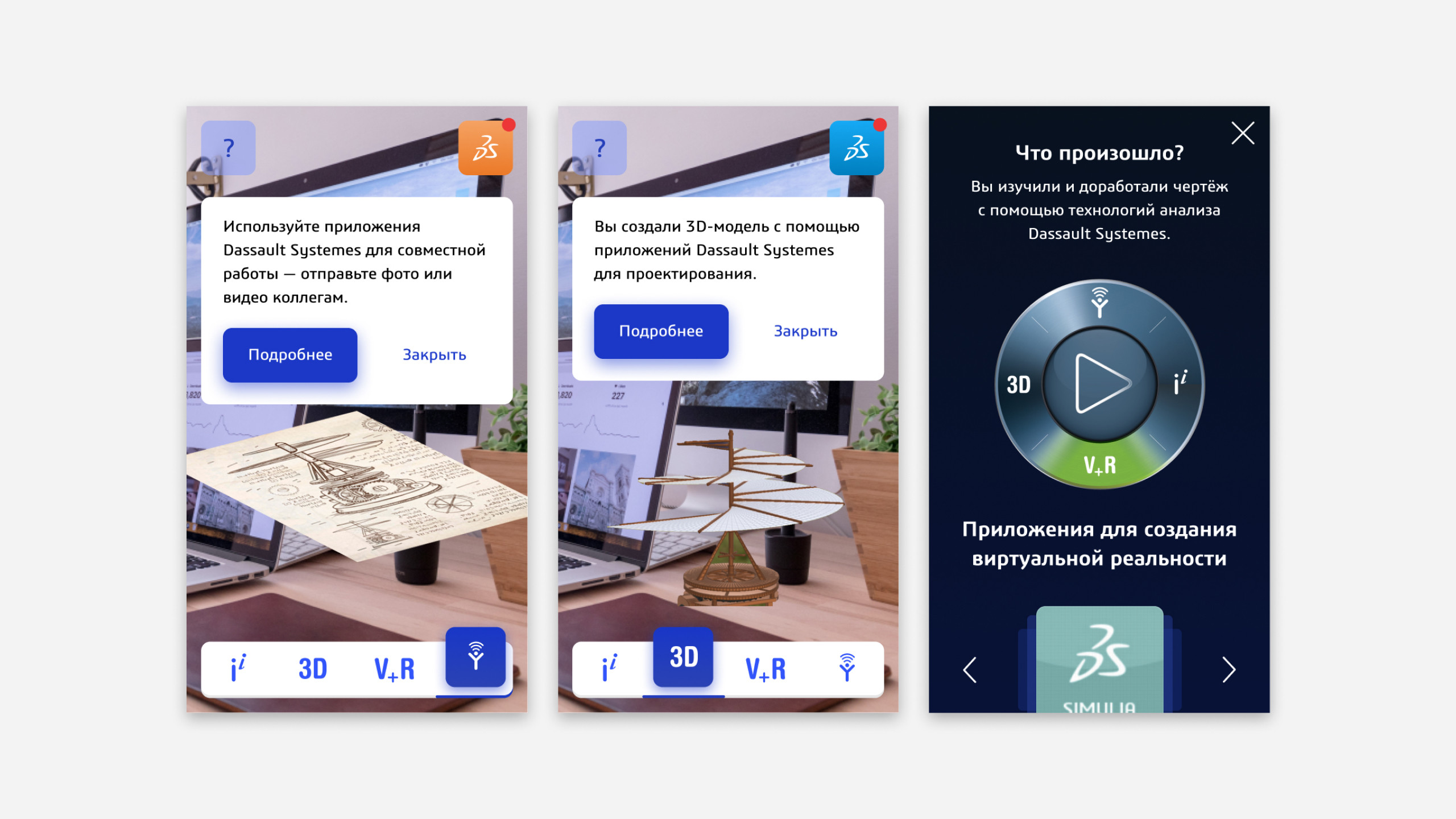 Разработали дизайн приложения в фирменном стиле Dassault Systèmes. Подготовили изображение со специальными метками для запуска дополненной реальности.