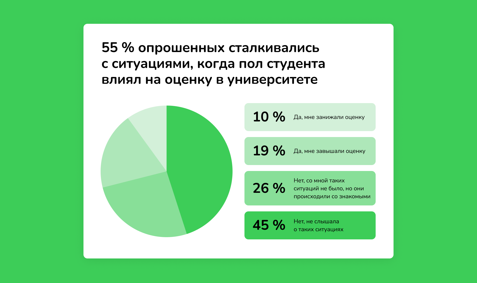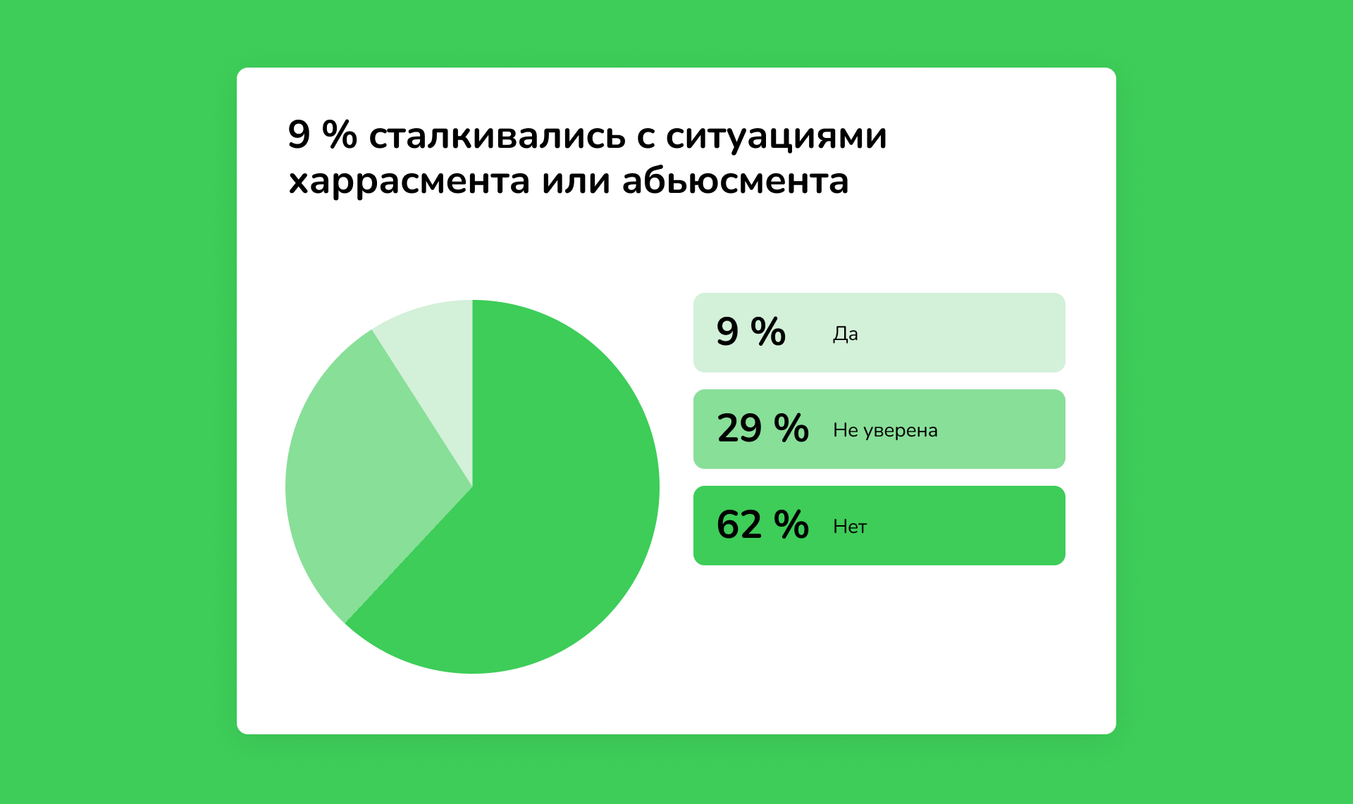 В результате мы получили понимание проблемы на большой выборке респондентов, данные, которые можно было анализировать и реальные истории девушек.
