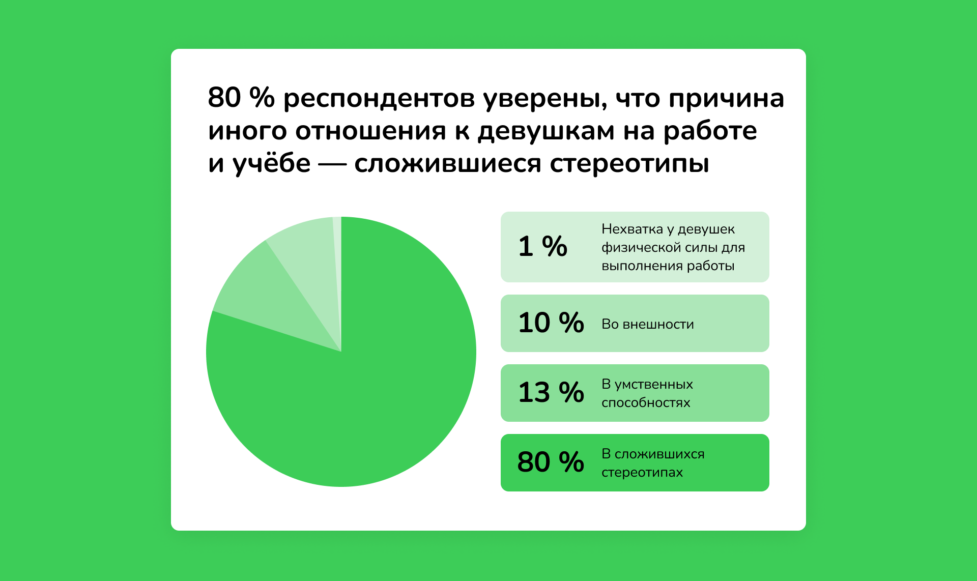На основе исследования подробно разобрали трудности, с которыми сталкиваются девушки в работе: неуверенность, стереотипы, дискриминация.
